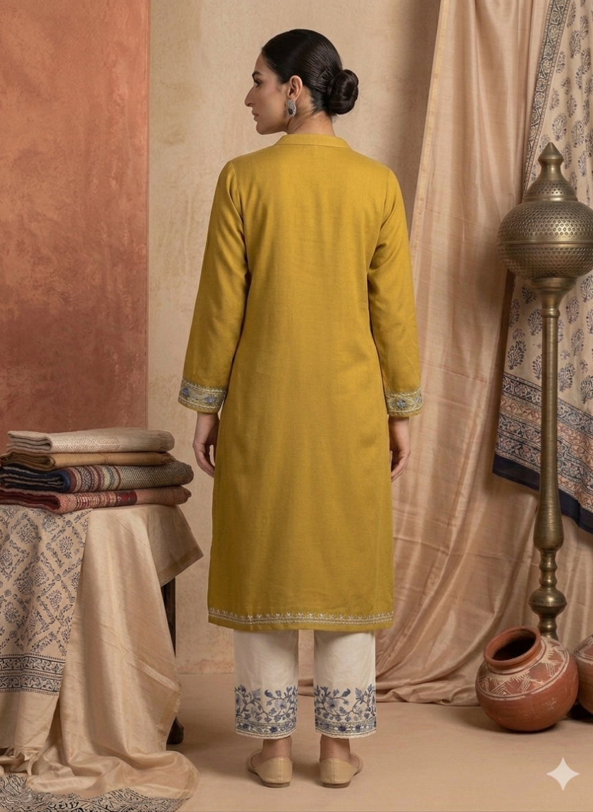 - The Saanjh wraps you in woollen kurtas and phirans made for winter sunsets.