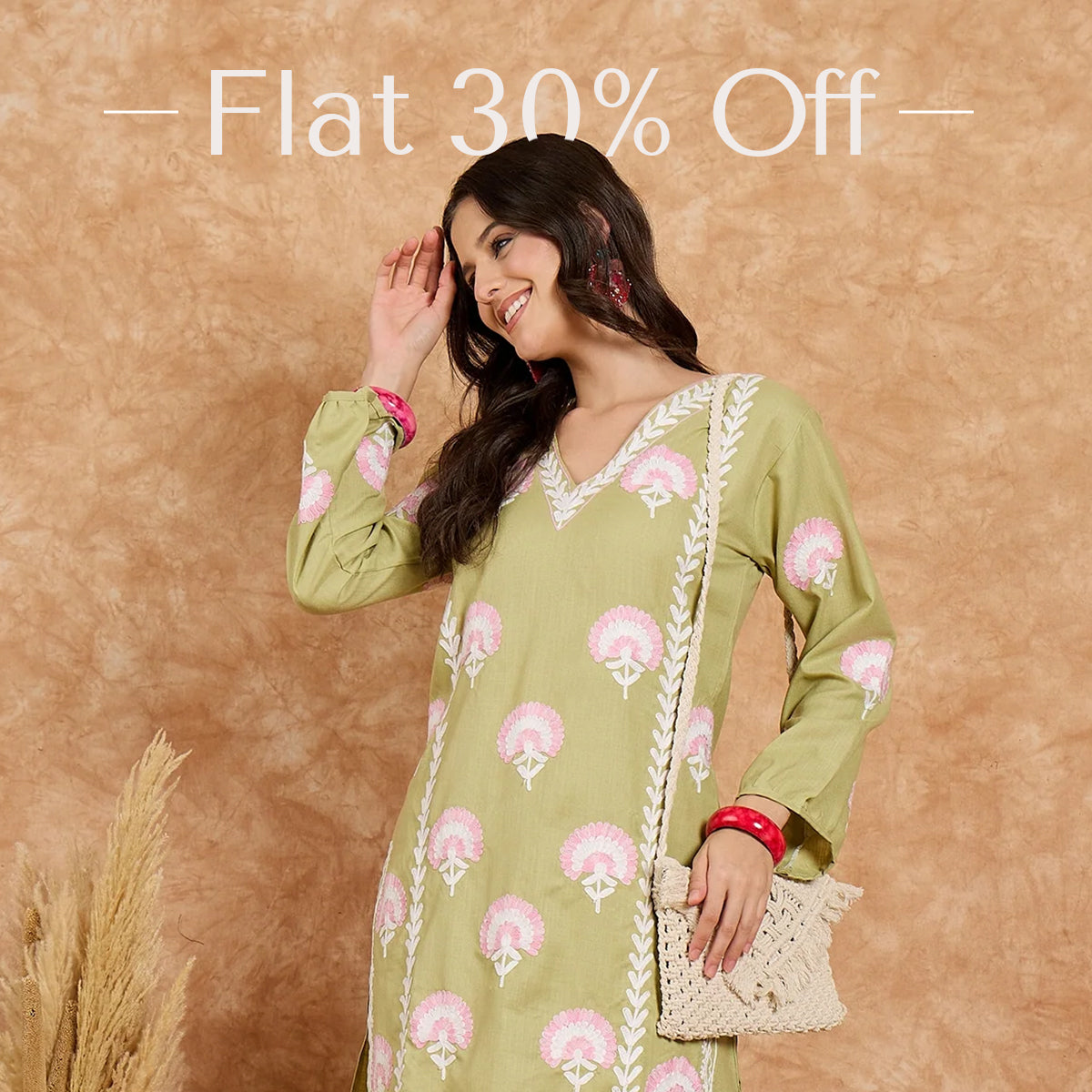Chikankari - Once limited to white-on-white, this Lucknowi hand embroidery now appears in pastels and rich tones on our kurtas and bottoms, adding breathable texture without weight.