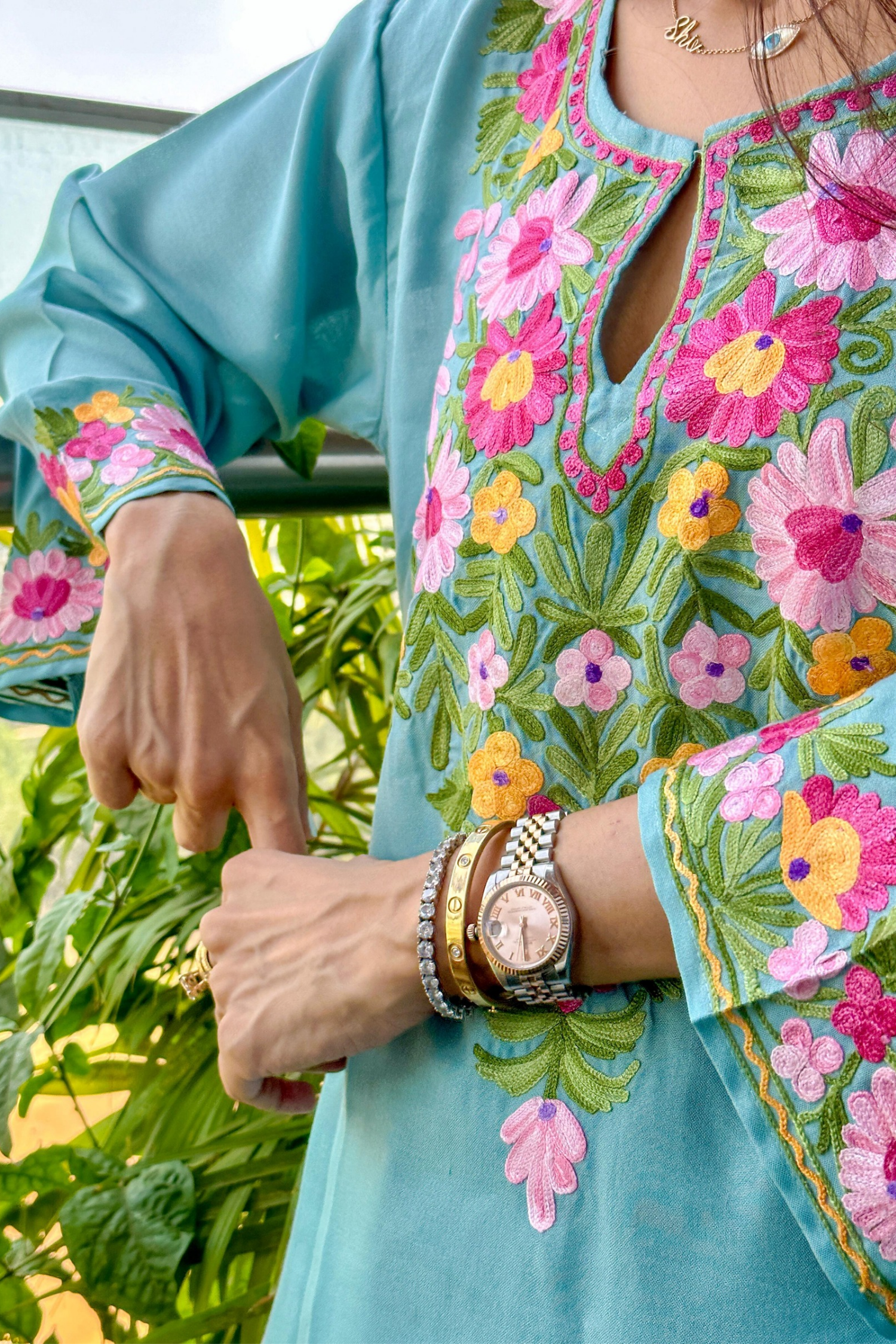 Kavya Trehan In Persian Blue Kashmiri Summer Kaftan - Short