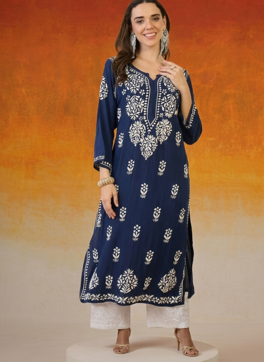 Sidra Blue Chikankari Straight Kurta