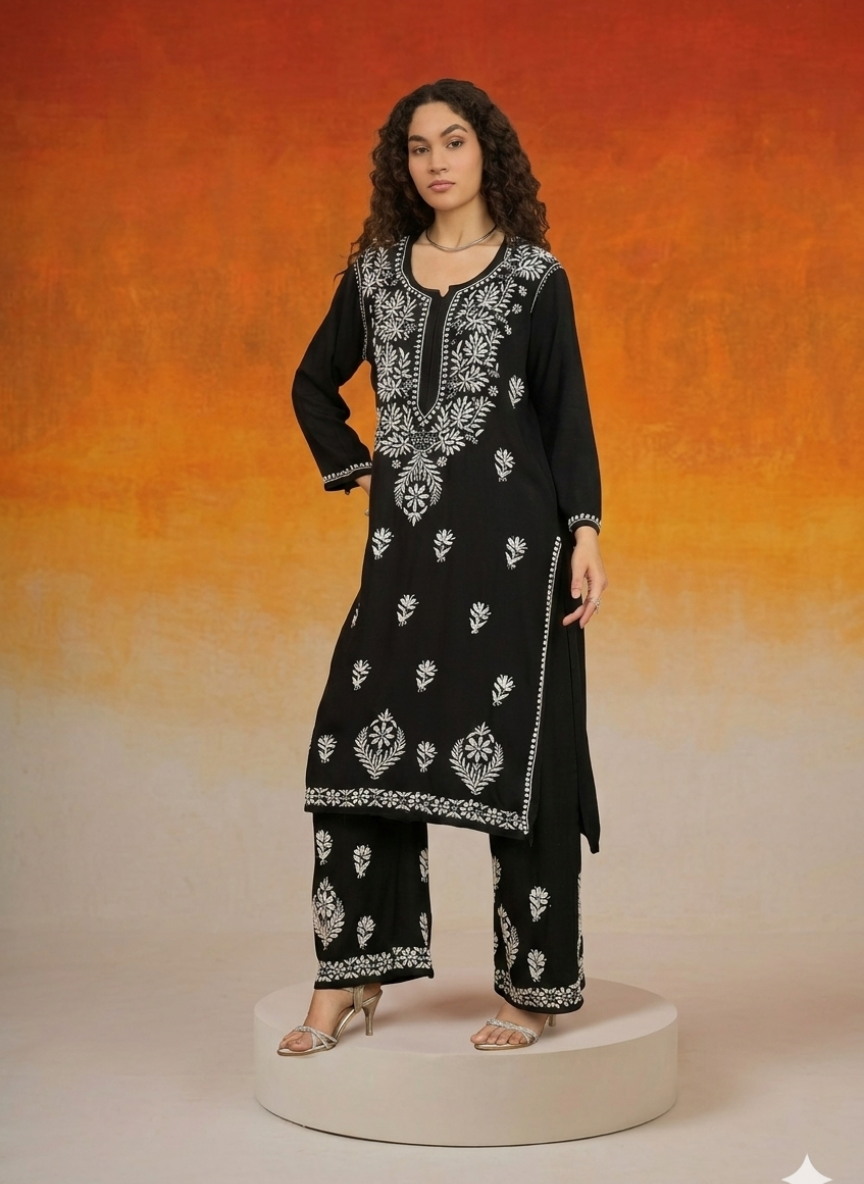Diya Black Chikankari Coord Kurta Set