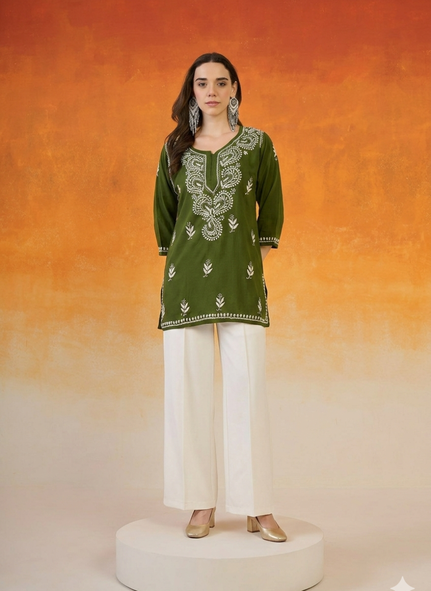 Sadia Green Chikankari Short Kurta
