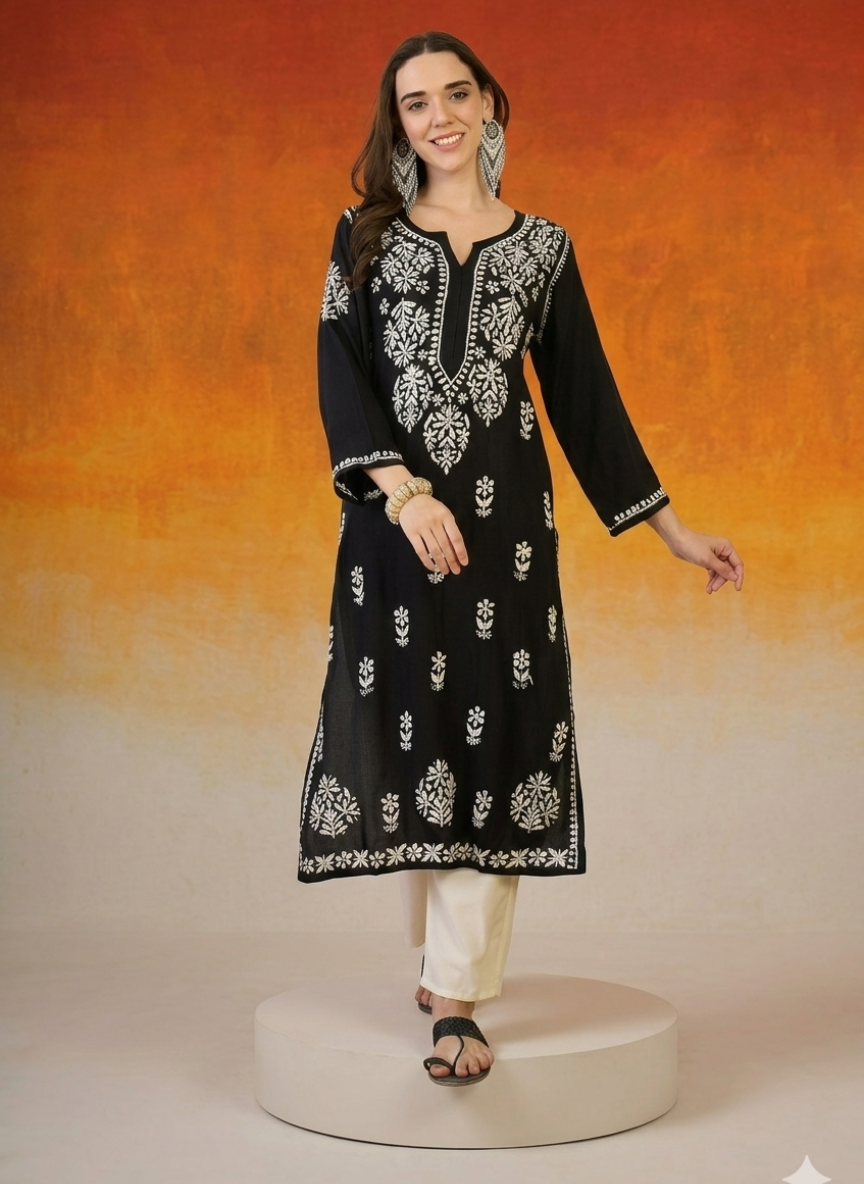 Sania Black Chikankari Straight Kurta