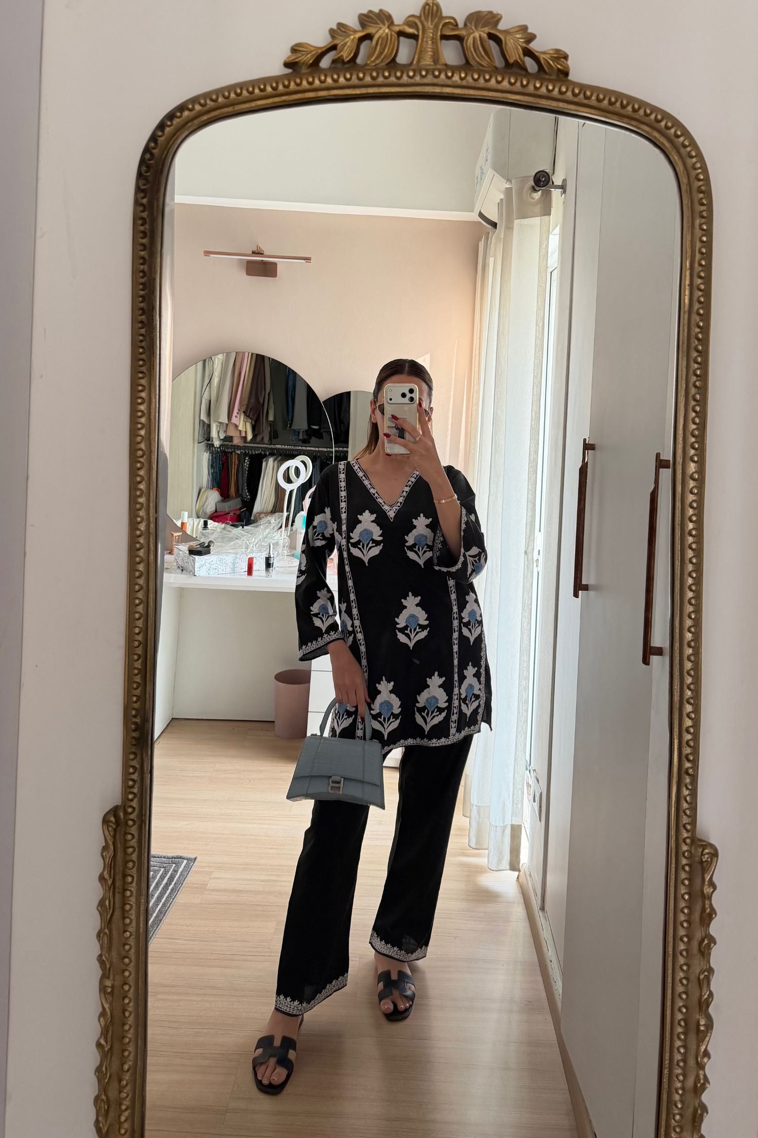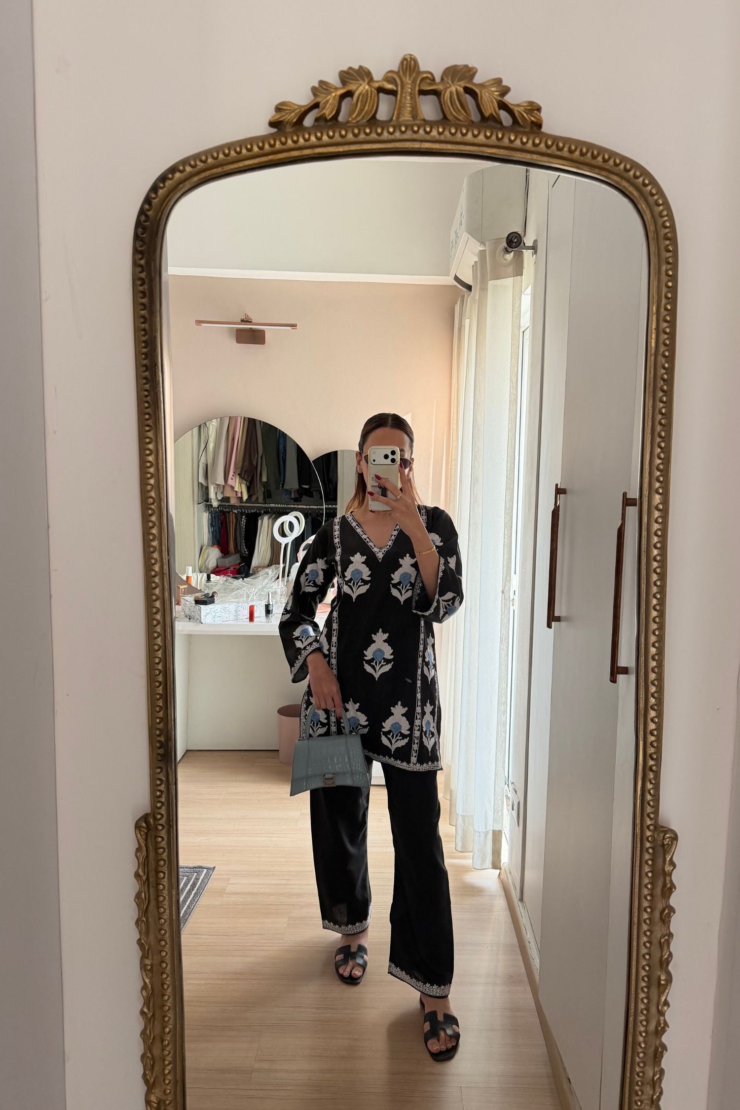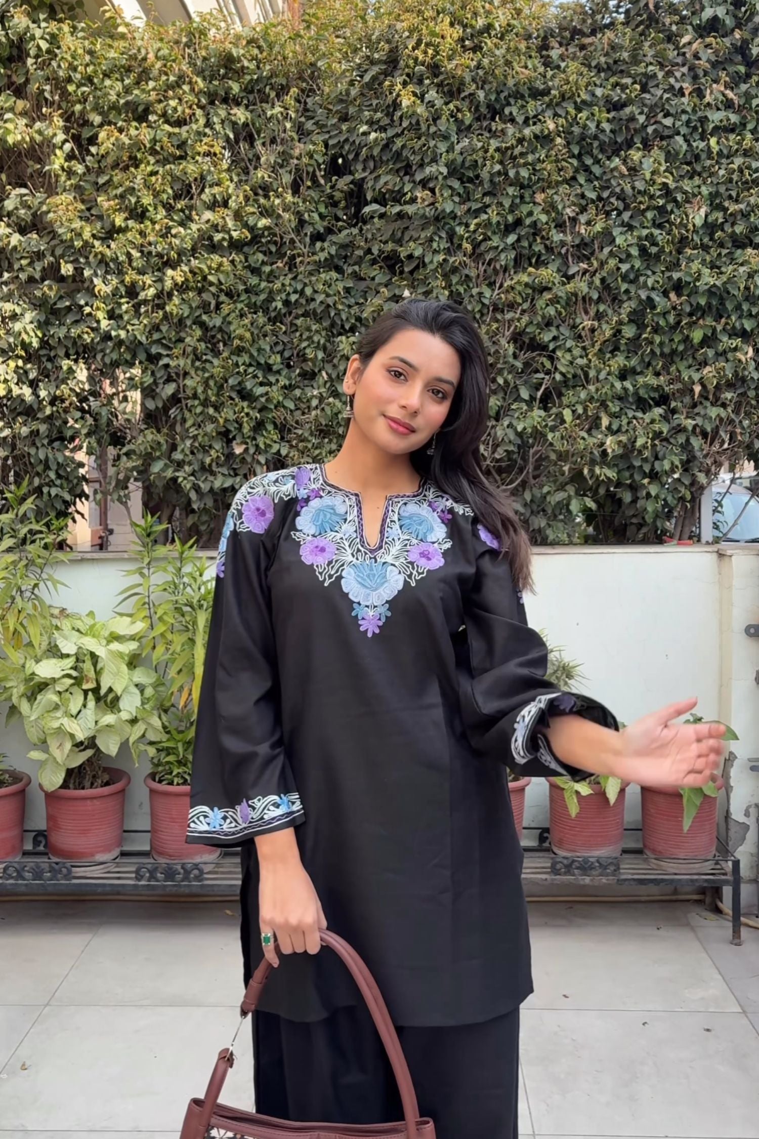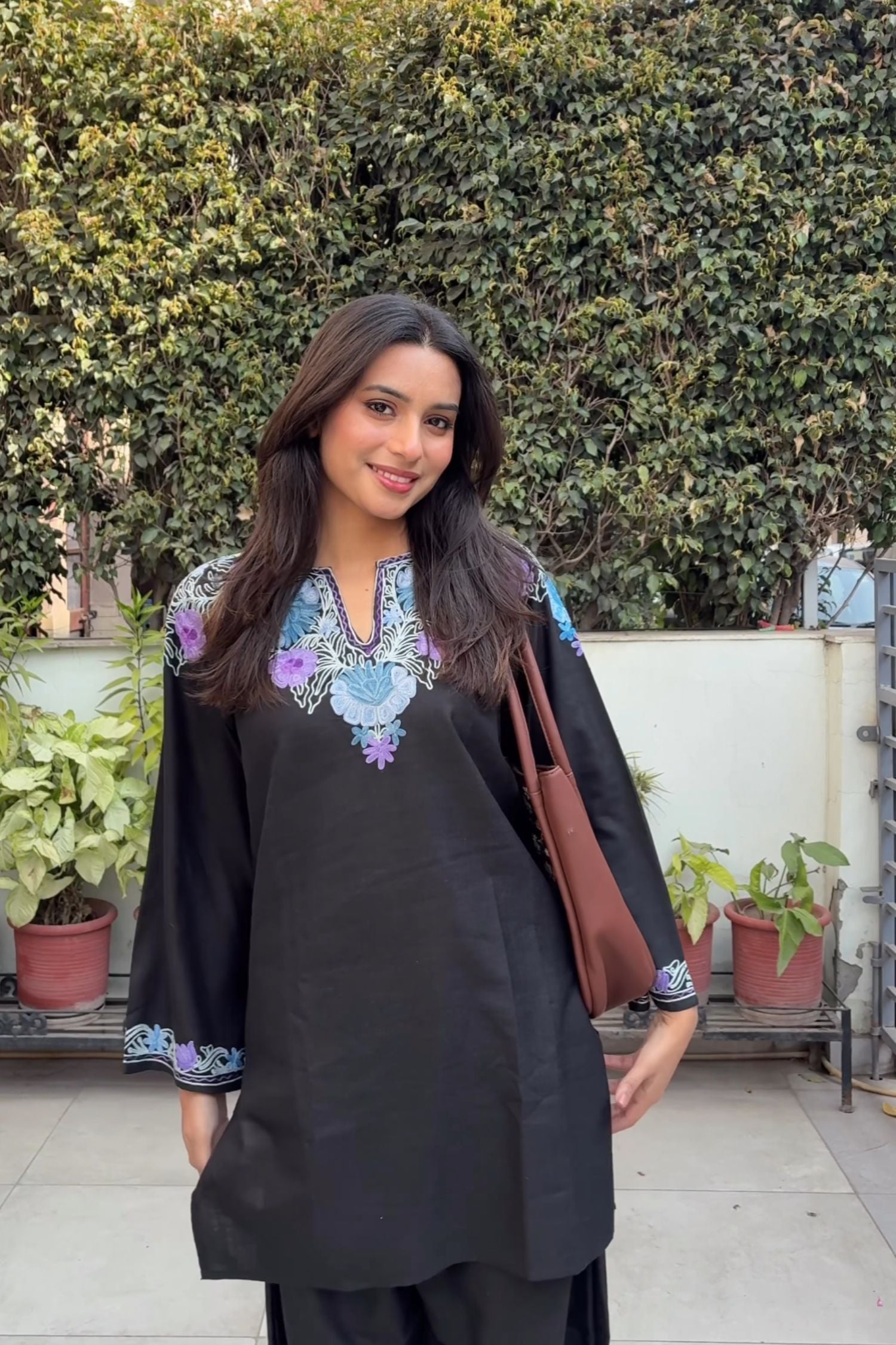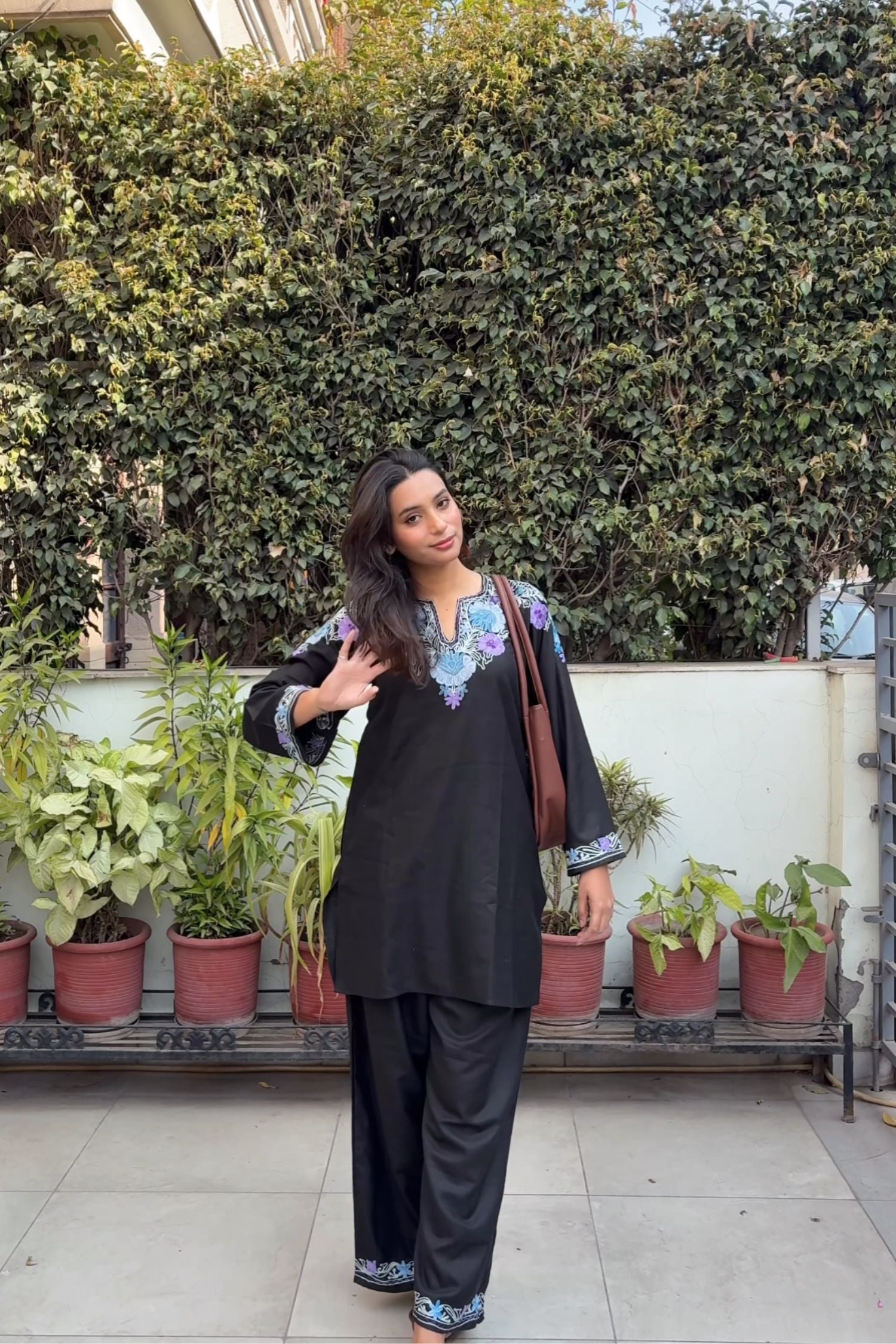 Galantea_Black_Kashmiri_Cotton_Kurta_Pants_Coord_Set_shop_Namastay
