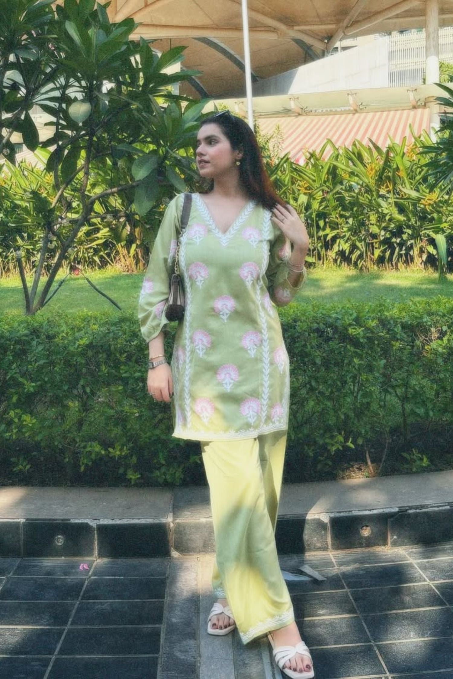 Blossom_Spaghetti_Chikankari_Pastel_Green_Short_Kurta_shop_Namastay