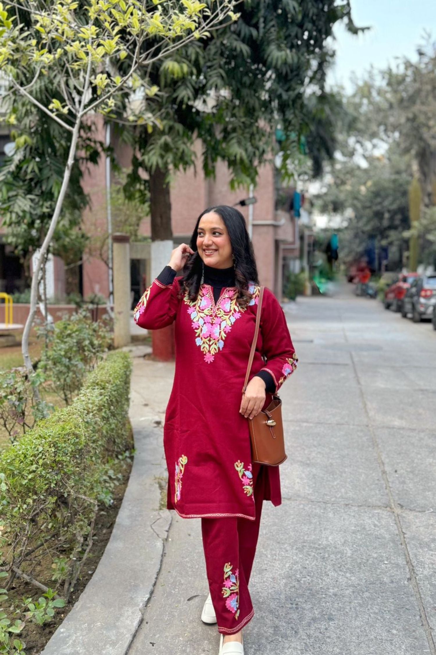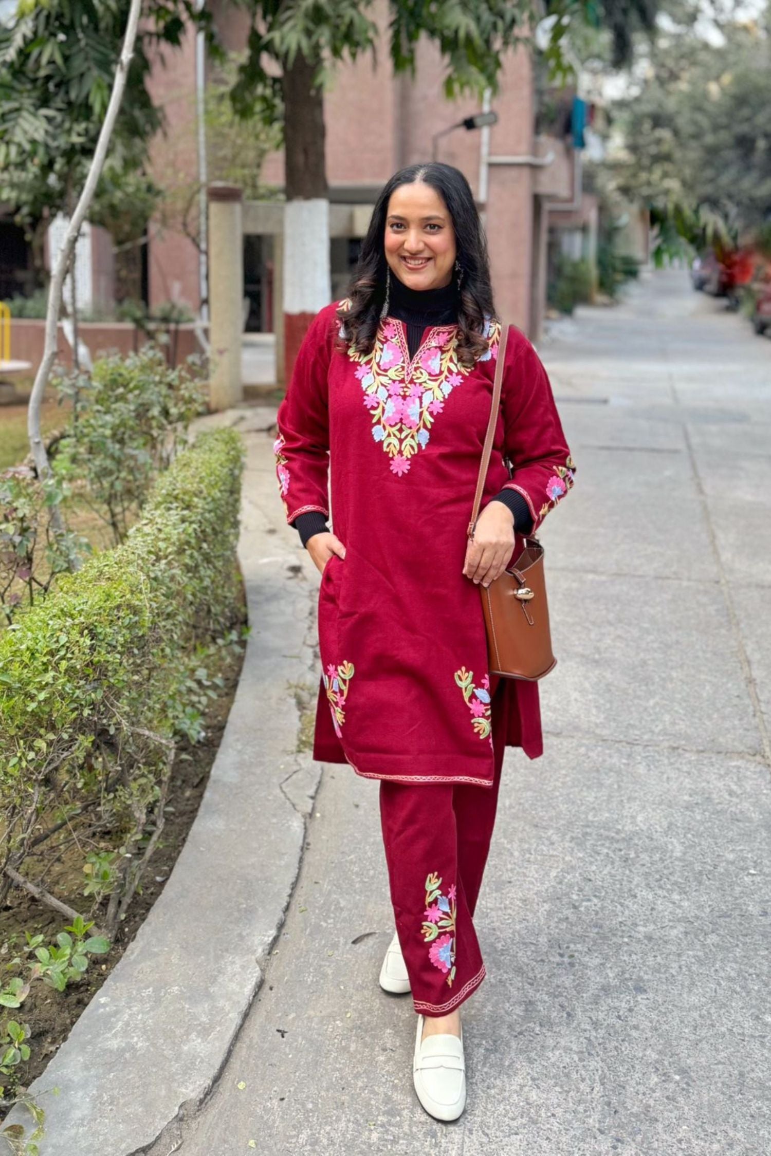 Aabroo_Red_Kashmiri_Cotton_Coord_Set_shop_Namastay