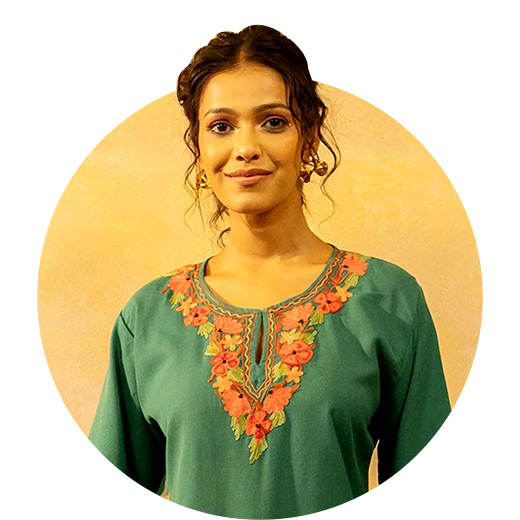 Each phiran is unlined so it drapes easily, but the dense Merino rich wool blend traps air for warmth and the aari embroidery anchors the layers together so the fabric never feels flimsy.