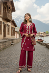 Falak Marsala Cotton Kashmiri Kurta and Pants Set