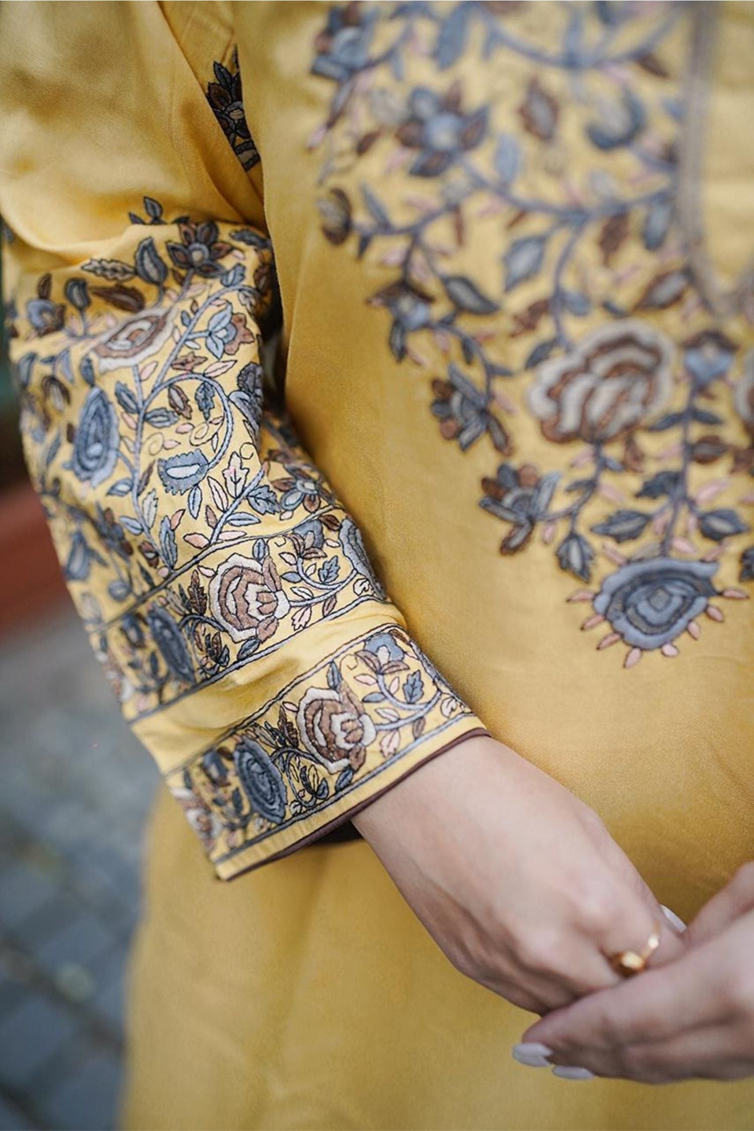 Naina Alhuwalia In Iman Biscotti Yellow Kashmiri Kurta Coord