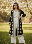 Its classic black shade makes it incredibly versatile for pairing it with ethnic or western outfits.Dress it up for festive evenings or layer it over everyday kurtas for a polished look. Comfortable yet striking, this long jacket is perfect for days when you want to look put-together with minimal effort and timeless charm.