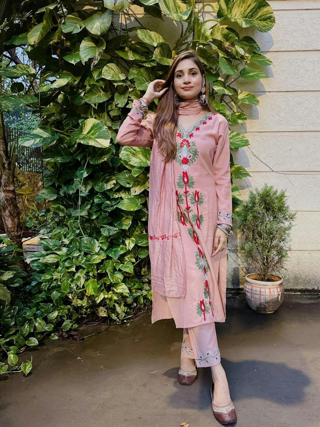 Azra Pink Cotton Kashmiri Kurta Suit Set
