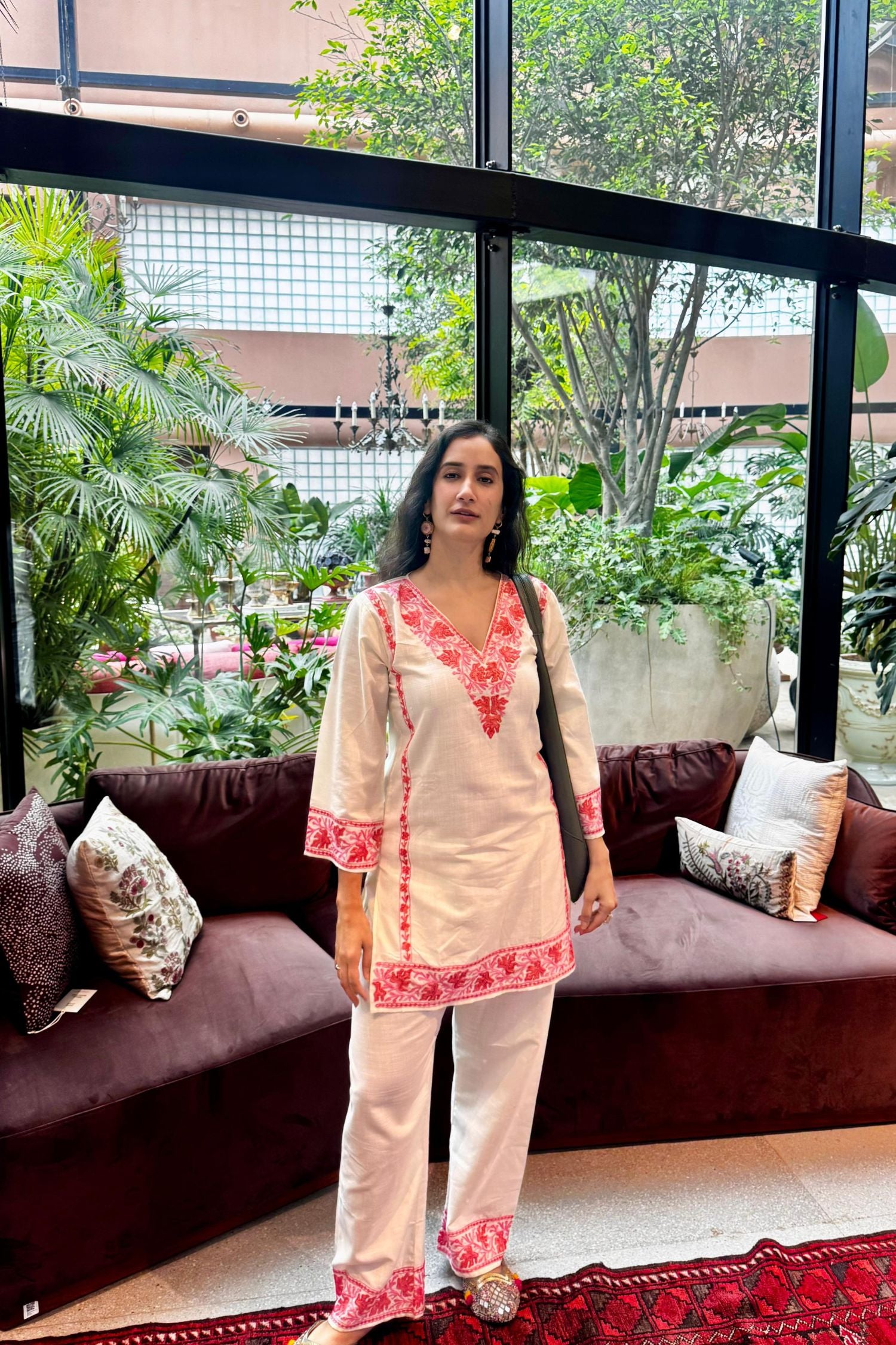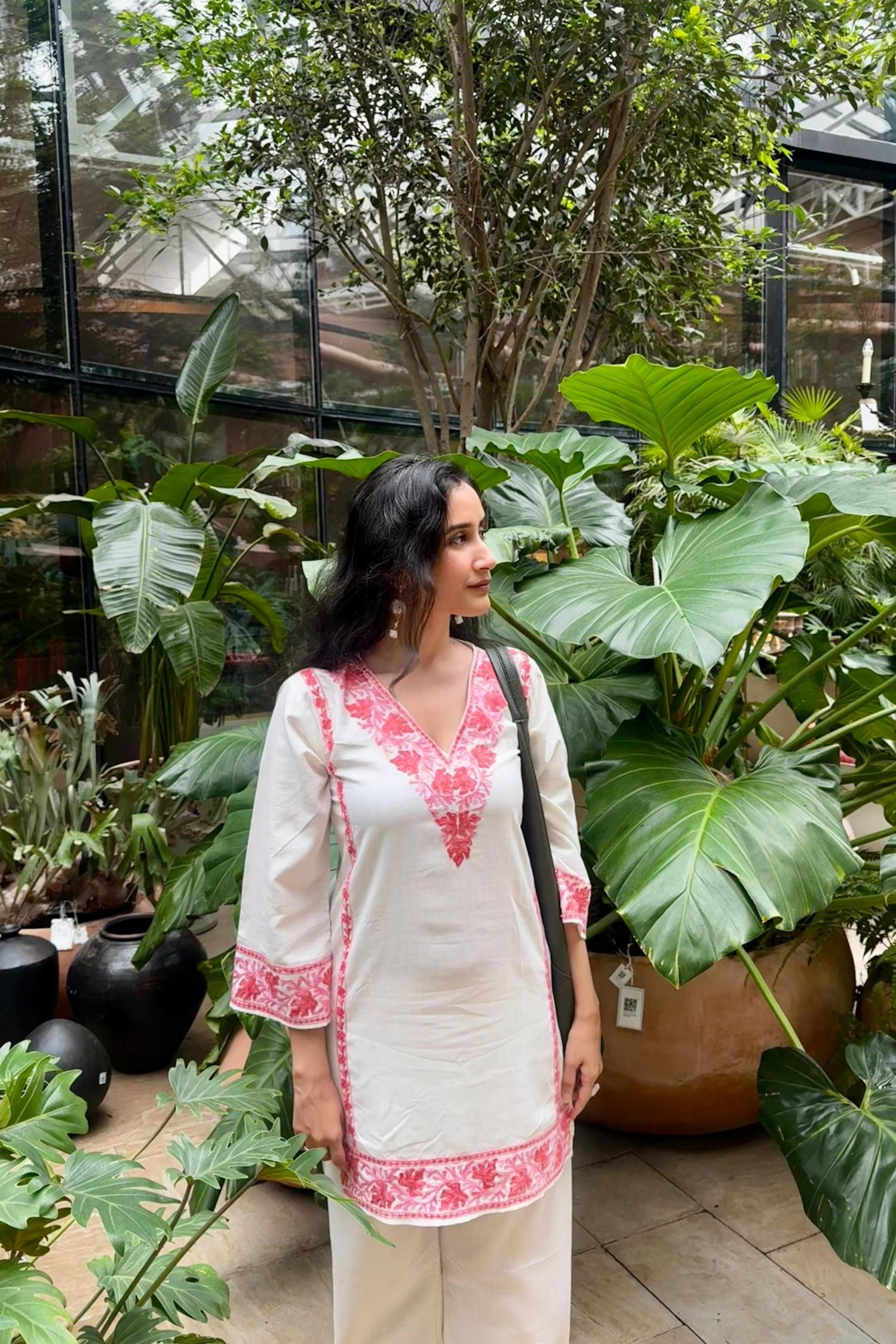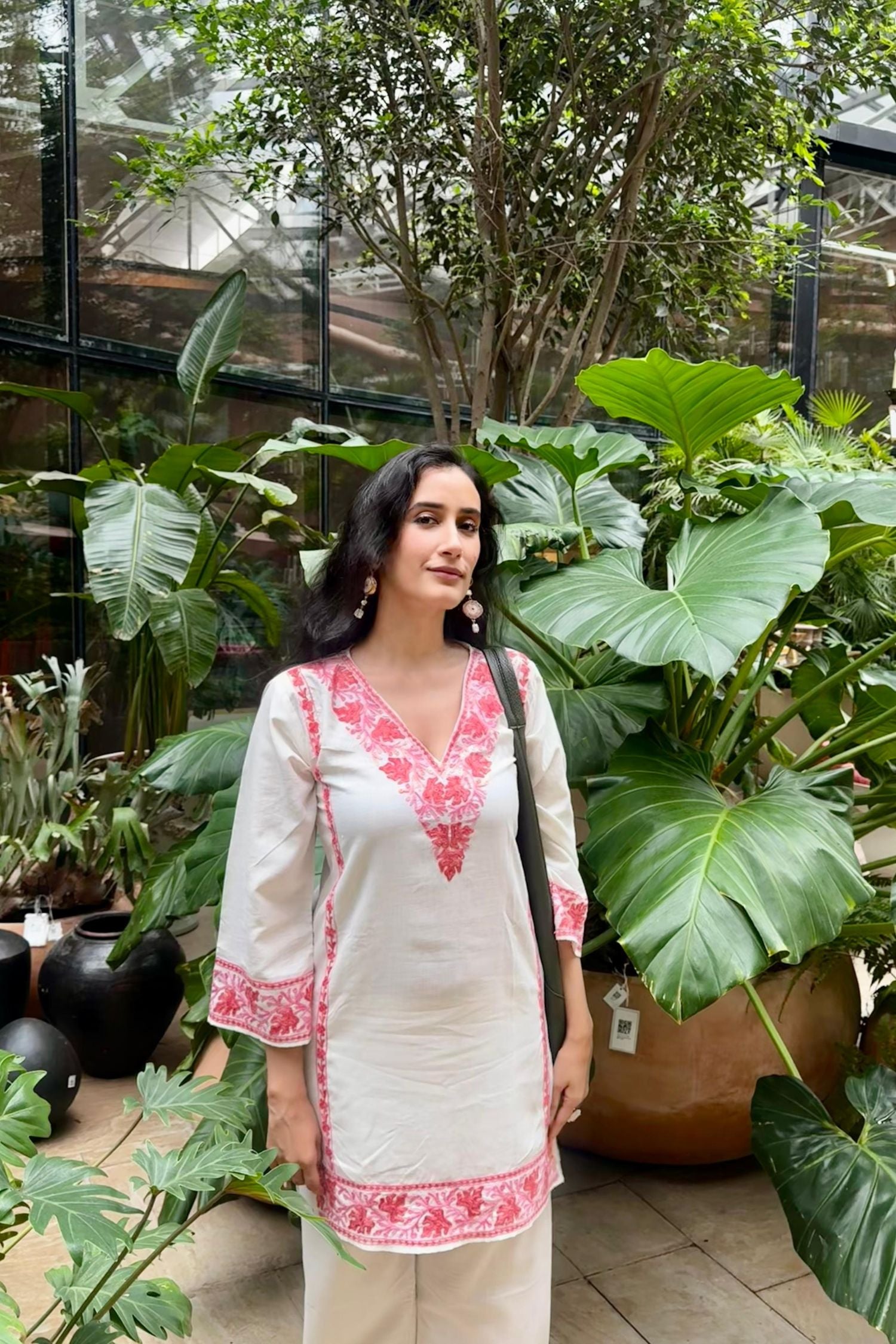 - Pink Chikankari Kurti: Our collection also features the timeless appeal of a pink chikankari kurti that exudes subtle sophistication.
