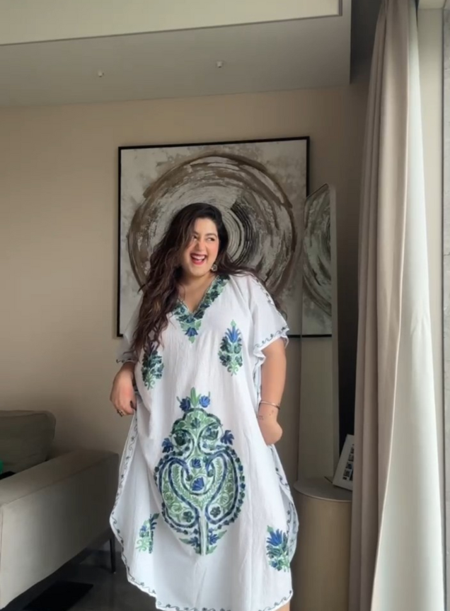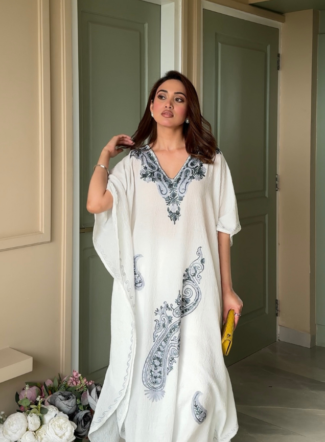 Sehaj Grover In Whimsical White Kashmiri Kaftan