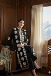 Meet the Urmi Black Long Rayon Kashmiri Jacket; easy, elegant, and made to be worn on repeat. Crafted in soft, flowy rayon, it feels light on the skin while falling beautifully on the body. The intricate Kashmiri aari embroidery  detailing adds just the right touch of artistry to this modern Silhouette.