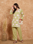 Yashmin Green Cotton Kashmiri Kurta and Pants Set